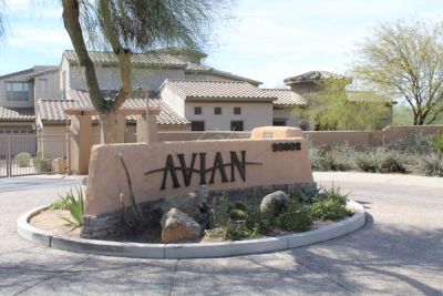 Avian at Grayhawk is a guard-gated community.Most patios have desert views. Some have a golf course view.