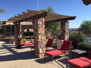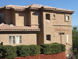 Four Peaks Condominiums is a Tuscan Inspired community centrally situated in Fountain Hills. This resort style community is situated around the pool area. Relax in one of the comfy lounge chairs by the pool, go for a swim, use the grill area for a picnic or get-together, and end up in the spa. The community also has a fitness center right off the pool, along with a steam room and theater.