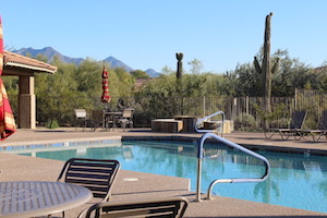 Most Mirage Village condos have wonderful south facing views from spacious patios.Enjoy McDowell Mountain views from the community pool.The spa is adjacent to the pool.All Mirage Village condos have one-car garages.