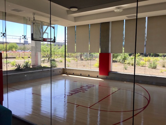 The Optima Kierland pool and spa is rooftop, with spectacular views while you lounge.No need to join the gym with this full featured fitness room.Grab some other residents for a game in this light-filled basketball court.Higher floor residents on the west side have awesome golf views and sunsets.
