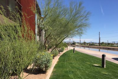 The industrial look gives this community a unique presence in downtown Scottsdale.